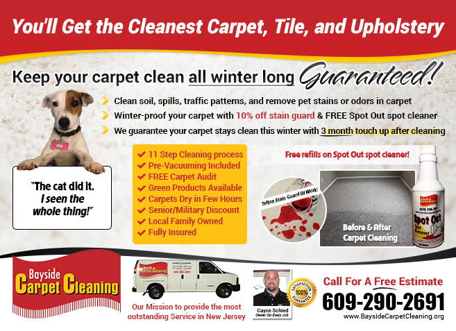 Use our services this Winter and receive a 3 month after the date of cleaning touch up if anything gets tracked in and messes up your clean home or business. Simply use the cards below or call , text, or email for details 609-290-2691.